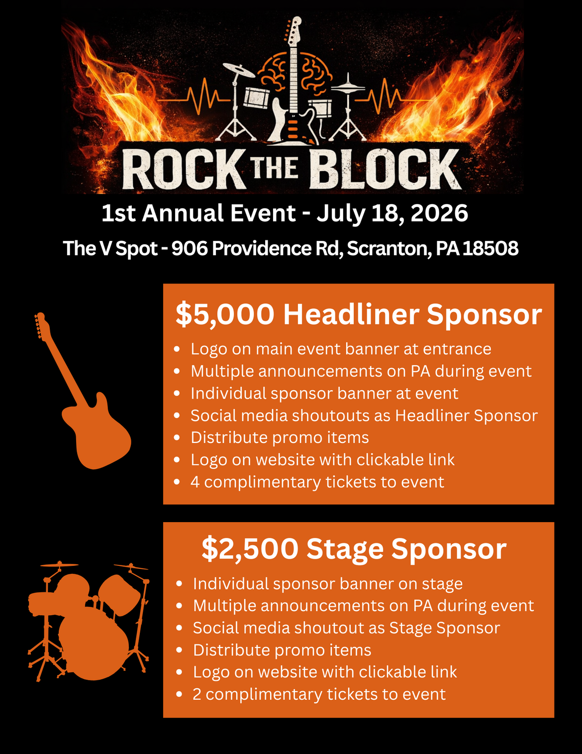 This exciting, full-day community event celebrates Tony’s love for music and the joy he brought to everyone around him. Live bands, food trucks, kid friendly, delicious food & drinks from The V Spot, basket raffles, 50/50 drawings, and a whole lot of fun will fill the day with unforgettable energy. The bands will be performing from the outdoor showmobile, their music will echo throughout the block and serve as the highlight of the event—which is why we chose the name “Rock the Block.” It’s a celebration that’s equal parts rock concert, community festival, and heartfelt tribute. You can expect a whole lot of dancing and fun! Since The V Spot sits right in downtown Scranton — just a short walk from where Tony grew up — attendees can literally see his childhood home from the event location. It’s a full-circle moment designed to bring together friends, family, and the local community to rock out for a cause, in the place his story began. Rock the Block is crafted to be both family-friendly and high-energy, with something for everyone — whether you grew up with Tony’s music or are discovering his legacy for the first time. We are excited to announce one of the bands that will be