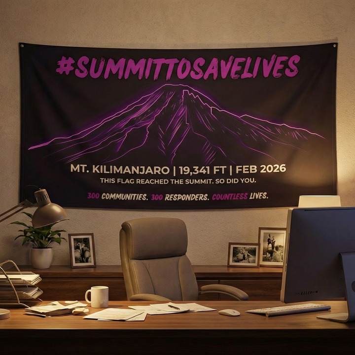 You get your own flag. Everything above, plus a personal Summit to Save Lives flag shipped to you after the climb. Hang it. Frame it. You earned it.