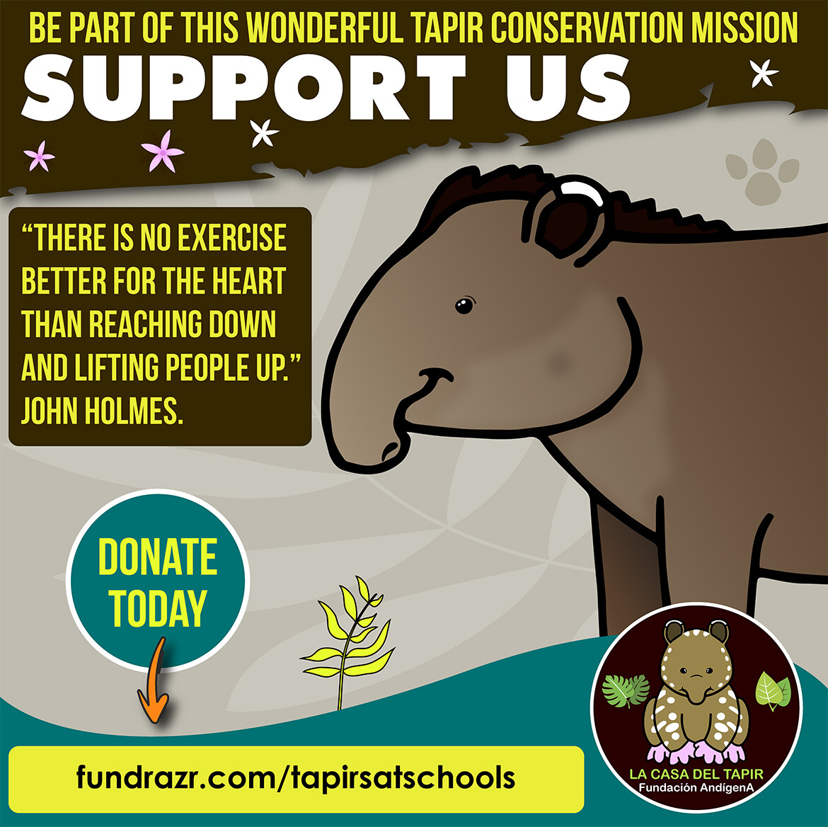 Maybe one dollar means nothing to many people in developed countries, but for us in Latin America is a concrete possibility to sustain a wonderful long-term wildlife conservation project based on environmental education as strategy to spread interest and love toward tapirs' conservation and their habitat. One single dollar can help us to sustain an active work to spread the word in favor to wildlife conservation.