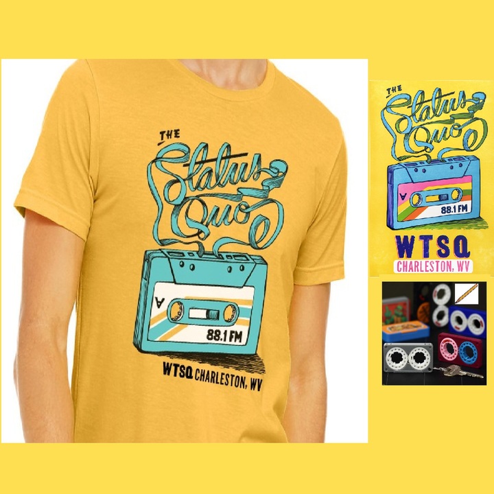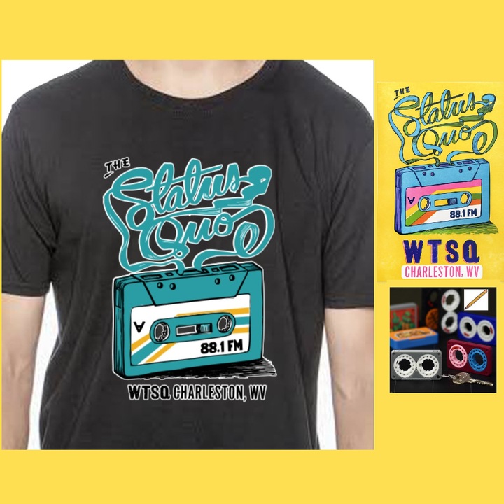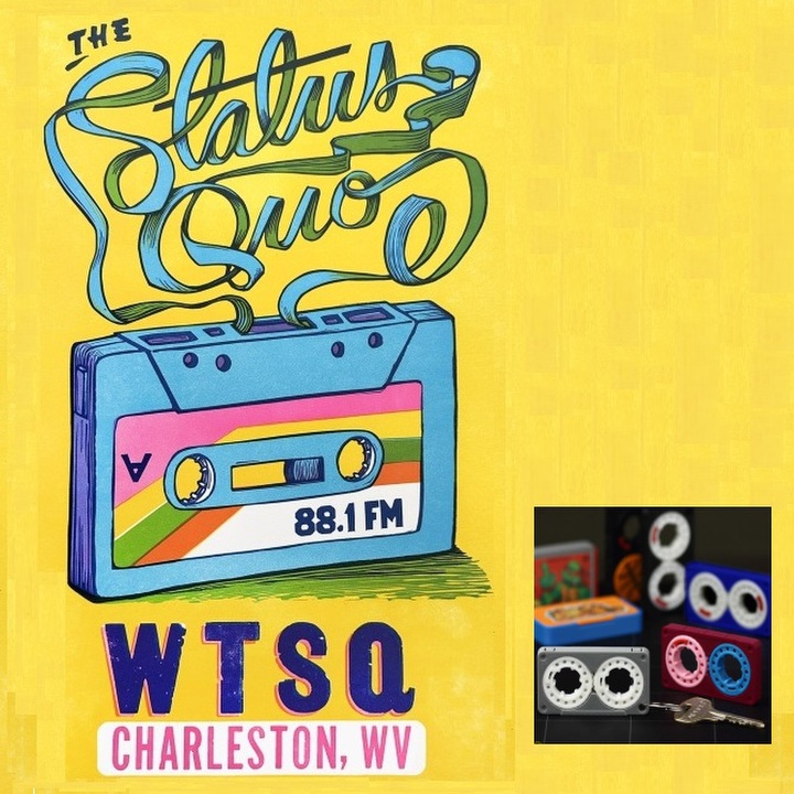 This year’s fund drive design comes from Camp NeverNice, featuring a vibrant, hand-crafted composition: a warped cassette reading The Status Quo alongside a classic WTSQ tape stamped with 88.1 FM. A nod to analog culture and creative mixes, where music is shared, genres blended, and communites are built ❤️